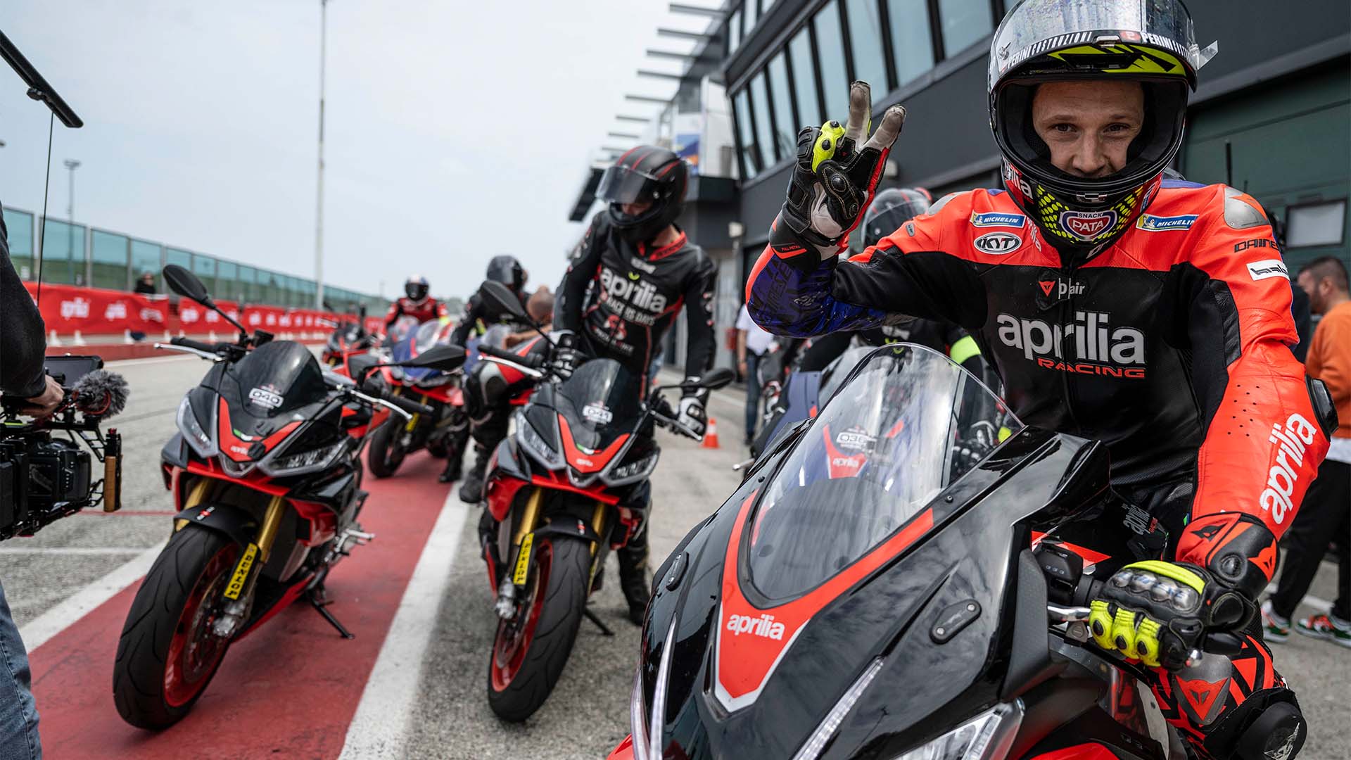 还有什么是比在赛道上赛车更有趣的体验?那就是驾驶一辆RSV4,在Max Biaggi的陪伴下,获得Aprilia赛车手们的指导!