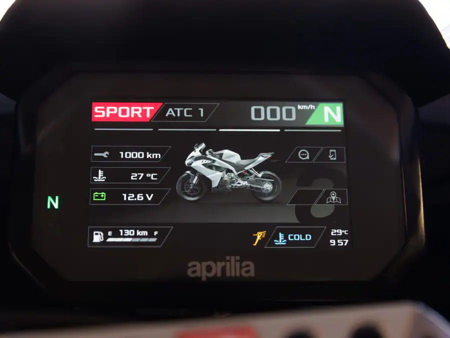 全LED前大灯展现了新一代Aprilia的标志性灯光风格,并集成了转向灯。仪表盘采用了高清5英寸TFT彩色显示屏,而精致的车把控制按钮则带有柔和的背光。