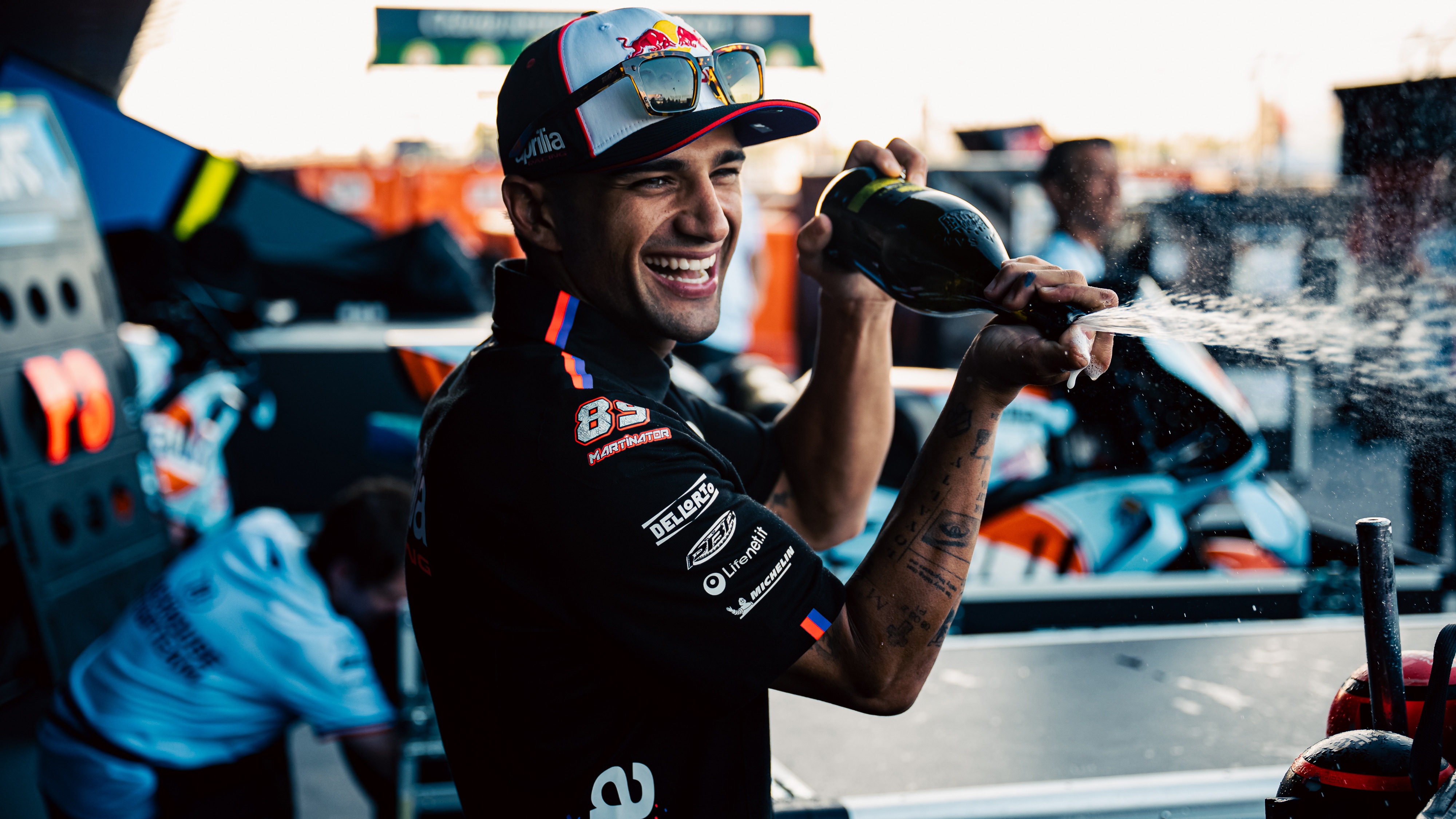 2026赛季MotoGP首场正赛在泰国武里南国际赛道燃情收官,两位Aprilia车手以绝对统治力,携手登上领奖台。从杆位发车的Marco Bezzecchi表现稳健,自第一个弯道起便一路领跑,率先冲过终点线,斩获个人在武里南赛道的首胜。这是这位意大利车手连续第三次在大奖赛中折桂(分别在葡萄牙波尔蒂芒、西班牙瓦伦西亚和泰国武里南)。同时,这也是他驾驶Aprilia赛车在顶级赛事中获得的第四场正赛胜利,刷新了历史纪录。对于Jorge Martín而言,同样是收获颇丰的一天——在比赛的大部分时段,他都稳居领奖台争夺之列,最终以第四名完赛,追平了他加盟Aprilia Racing以来的最佳正赛战绩。
